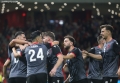 Players of the Albanian National Team celebrating scoring a goal during the friendly football match, Albania vs Armenia, 2-0 played at the Air Albania stadium in Tirana.