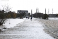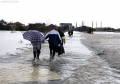 People walking on a flooded road in the village of Kuc near the city of Shkodra. The heavy rains of the last few days in Albania have brought flooding of rivers and floods in the western areas of the country, low-lying buildings and arable lands.