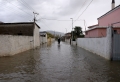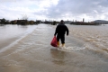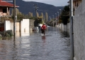 FLOODING IN KUC OF SHKODRA - A man walks on a flooded road in the village of Kuc near the city of Shkodra. The heavy rains of the last few days in Albania have brought flooding of rivers and floods in the western areas of the country, low-lying buildings and arable lands.