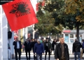Albanian flags near the New Bazaar area on the occasion of the national holidays of November 28 and 29. This year celebrates the 110th anniversary of Albania's Independence.