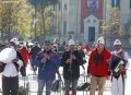 A couple dressed in the colors of the Albanian flag walking on Luigj Gurakuqi street on the occasion of the national holidays of November 28 and 29. This year celebrates the 110th anniversary of Albania's Independence.