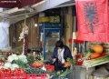 Albanian flags near a fruit and vegetable shop on the occasion of the national holidays of November 28 and 29. This year celebrates the 110th anniversary of Albania's Independence.