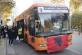Albanian flag placed on the front of a Kinostudio bus on the occasion of the national holidays of November 28 and 29. This year celebrates the 110th anniversary of Albania's Independence.
