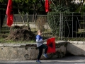 Boy with a T-shirt with the colors of the Albanian flag during the homages at the Martyrs' Mausoleum in Durres, on the occasion of November 29, the day of the Liberation of Albania.