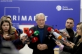 Head of the Democratic Party, Sali Berisha speking for journalists speaking during the Primaries in the Democratic Party, which aim to produce DP candidates for mayor, who will compete in the local elections on May 14, 2023. The primaries were organized in some of the main districts of the country, while about 42,000 party members or sympathizers voted.