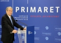 The chairman of the Democratic Party, Sali Berisha enters a press conference at the blue headquarters, where the chairman spoke about the protest of December 6 in Tirana, while inviting people to protest against the government. Berisha clarified that the protest has nothing to do with the EU-Western Balkan Summit and is only against Prime Minister Rama.