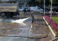 Municipal worker cleaning the area in front of the Palace of Congress, one day before the EU-Western Balkans summit. On December 6, the heads of state of the European Union will gather in Tirana, to talk about the war in Ukraine, immigration, the fight against terrorism and organized crime, as well as the strengthening of security in order to prevent foreign interventions.