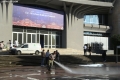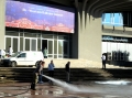 CLEANING IN FRONT OF THE PALACE OF CONGRESS - Municipal worker cleaning the area in front of the Palace of Congress, one day before the EU-Western Balkans summit. On December 6, the heads of state of the European Union will gather in Tirana, to talk about the war in Ukraine, immigration, the fight against terrorism and organized crime, as well as the strengthening of security in order to prevent foreign interventions.