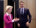 The President of the European Commission, Ursula Von Der Leyen and the Greek Prime Minister, Kyriakos Mitsotakis during the proceedings of the EU-Western Balkans Summit , organized in Tirana. At the end of the meeting, the agreement was confirmed for the reduction of roaming charges for the citizens of the Balkans in the EU and aid in the value of 85 million Euros from the EU for Albania in the energy sector.