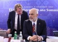 The Prime Minister of Ireland, Micheal Martin, the General Secretary of the Regional Cooperation Council, Majlinda Bregu and the Italian Prime Minister, Georgia Meloni during the proceedings of the EU-Western Balkans Summit , organized in Tirana. At the end of the meeting, the agreement was confirmed for the reduction of roaming charges for the citizens of the Balkans in the EU and aid in the value of 85 million Euros from the EU for Albania in the energy sector.