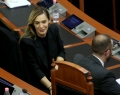 Minister of Health and Social Protection, Ogerta Manastirliu and Deputy Prime Minister and Minister of Energy and Infrastructure Belinda Balluku speaking during a parliamentary session, in which one normative act regarding PFIZER vaccines was approved and the two new MPs, Petrit Doda and Orjela Nebiaj, were sworn in. The latter replaced Alfred Rushaj and Grida Duma, who gave up from their mandate.