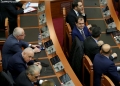 New MP Petrit Doda and Xhelal Mziu during a parliamentary session, in which one normative act regarding PFIZER vaccines was approved and the two new MPs, he and Orjela Nebiaj, were sworn in. The latter replaced Alfred Rushaj and Grida Duma, who gave up from their mandate.