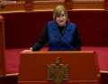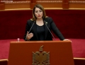 MP Jorida Tabaku speaking during a parliamentary session, in which one normative act regarding PFIZER vaccines was approved and the two new MPs, Petrit Doda and Orjela Nebiaj, were sworn in. The latter replaced Alfred Rushaj and Grida Duma, who gave up from their mandate.
