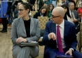 The Minister of Finance and Economy, Delina Ibrahimaj and the President of the American Chamber of Commerce, Enio Jaco, during a conference regarding the future of the workforce and its departure from Albania. The conference was organized by Monitor Magazine and the American Chamber of Commerce.