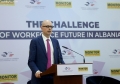 CONFERENCE ON THE FUTURE OF THE WORKFORCE - The Minister of Finance and Economy, Delina Ibrahimaj speaking during a conference about the future of the workforce and it's departure from Albania. The conference was organized by Monitor Magazine and the American Chamber of Commerce.