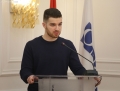 The winner of the competition, Ardit Sulaj speaking during a meeting held in the framework of a competition organized by OSCE in the field of law. The competition held had as its subject the drafting of an individual constitutional complaint and was held in several universities in Albania.