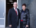 Judge of the Court of the Judicial District of Tirana, Majlinda Dogga and her lawyer Sokol Malaj after a session of the Independent Qualification Commission, IQC, which in the decision given has qualified her as a clean figure at the end of the process of transitional revaluation, otherwise known as the vetting process. Dogga passed the three evaluation pillars, the professional side, wealth, and integrity.