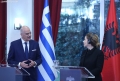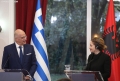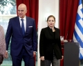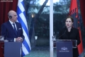 The Greek Foreign Minister, Nikos Dendias, and the Minister for Europe and Foreign Affairs, Olta Xhacka after a joint press conference. During the conference, the ministers spoke about the issue of the sea, the intensification of relations between the two countries, the energy crisis and the war in Ukraine.
