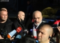 RAMA SPEAKS TO THE MEDIA AFTER THE THEATER CEREMONY - Prime Minister Edi Rama, surrounded by police forces speaking to the media after the presentation ceremony for the project of the new national theater, which was also attended by the mayor of Tirana, Erion Veliaj. The new theater, designed by the Danish architect Bjarke Ingels, will be built in the place where the old theater stood. The destruction of the theater and the project have met with protests and resistance from artists and citizens.