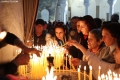 Orthodox believers hold candles in their hands in the premises of the cathedral Resurrection of Christ in Tirana on the occasion of Christmas 2022.