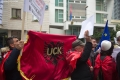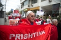 PROTESTS CONTINUE FOR THE SITUATION IN KOSOVO - Citizens with Albanian flags and banners protesting in front of the Serbian Embassy in Tirana regarding the situation created in the north of Kosovo, where Serbian citizens have blocked the roads as a result of the arrest of a former Serbian officer. Albanian citizens have appealed for a solution to the situation.