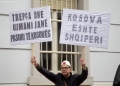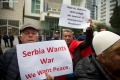 Citizens with banners protesting in front of the Serbian Embassy in Tirana regarding the situation created in the north of Kosovo, where Serbian citizens have blocked the roads as a result of the arrest of a former Serbian officer. Albanian citizens have appealed for a solution to the situation.