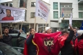 Citizens with Albanian flags and banners protesting in front of the Serbian Embassy in Tirana regarding the situation created in the north of Kosovo, where Serbian citizens have blocked the roads as a result of the arrest of a former Serbian officer. Albanian citizens have appealed for a solution to the situation.