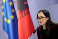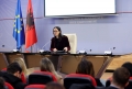 Minister of Finance and Economy, Delina Ibrahimaj speaking during a press conference. During the conference, Ibrahimaj focused on economic growth, sectors that have influenced growth and other issues.