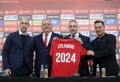 DUKA PRESENTS SYLVINHO - AFF President Armand Duka, after the contract signing ceremony with the Brazilian Sylvio Mendes Canpos Junior (Sylvinho), as the new coach of the Albanian national football team, as well as the two assistant coaches Pablo Javier Zabaleta Girod and Dorival Guidoni Junior .