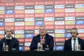 Brazilian Sylvio Mendes Canpos Junior (Sylvinho) speaking during the ceremony of his presentation as the new coach of the National Football Team of Albania, while Guidoni and Zabaleta will be assistant coaches. Sylvinho replaces the Italian Edoardo Reja and has signed an 18-month contract.