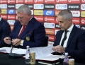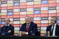 AFF President Armand Duka, Brazilian Sylvio Mendes Canpos Junior (Sylvinho) and Dorival Guidoni Junior during the presentation ceremony of Sylvinho as the new coach of the National Football Team of Albania, while Guidoni and Zabaleta will be assistant coaches . Sylvinho replaces the Italian Edoardo Reja and has signed an 18-month contract.