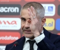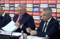 AFF President Armand Duka speaking during the ceremony of presentation of Brazilian Sylvio Mendes Canpos Junior (Sylvinho)as the new coach of the National Football Team of Albania, while Guidoni and Zabaleta will be assistant coaches. Sylvinho replaces the Italian Edoardo Reja and has signed an 18-month contract.
