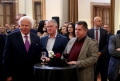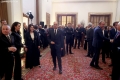 Prec Zogaj, Ylli Rakipi, Aleksander Frangaj dhe Luan Rama during the reception of the President of the Republic, Bajram Begaj with the journalists on the occasion of the new year 2023. He called on the media to stand up at the level of their mission, asking them not to abuse the media space for narrow interests.