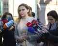 MP Jorida Tabaku speaking to the media before the headquarters of the parliament, where she spoke out against the head of the parliamentary group Enkelejd Alibeaj who expelled four MPs. She said that this is not the way DP unites, demanding steps from both parties to come up with common candidates for the elections of May 14.