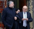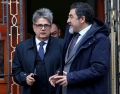 The Minister of the Interior, Bledar Cuci, and Deputy Benet Beci coming out of the meeting of the Parliamentary group of the SP, where each of the ministers and deputies handed over the envelopes with the three names they propose as candidates for the new president of the Republic.