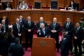 Head of the democratic party, Sali Berisha speaking in a moment of tension during a parliamentary session, in which the victims of the Holocaust were remembered, while there were many debates related to the McGonigal case.