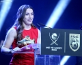 Footballer Megi Doci receives the Golden Ball award for women during the annual award ceremony for the Albanian football in the gala evening with the title Best of 2022 in the premises of the National Theater of Opera and Ballet.