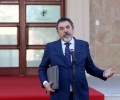 Minister of Defense, Niko Peleshi speaking in front of the Prime Minister's office, after a government meeting, regarding the approved decisions.