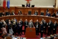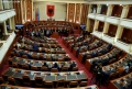 Majority MPs voting during a parliamentary session, where the opposition MPs requested an interpellation with Prime Minister Edi Rama regarding the McGonigal case, insisting that they would not continue the session if it was not carried out.