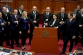 Ministers Elisa Spiropali, Delina Ibrahimaj, Ulsi Manja dhe Evis Kushi during a parliamentary session, where the opposition MPs requested an interpellation with the Prime Minister Edi Rama regarding the McGonigal case, insisting that they would not continue the session if it was not carried out .