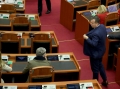 MPs Petrit Vasili voting during a parliamentary session, where the opposition MPs requested an interpellation with Prime Minister Edi Rama regarding the McGonigal case, insisting that they would not continue the session if it was not carried out.