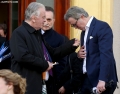 MPs Ervin Salianji, Bledjon Nallbati and Ferdinant Xhaferaj outside the parliament building after a session, where the opposition MPs requested an interpellation with Prime Minister Edi Rama regarding the McGonigal case, insisting that they would not continue the session if it was not carried out.