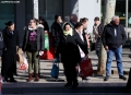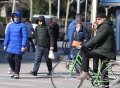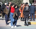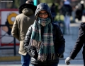 Bypassers dressed in thick winter clothing, scarves and hats, in the streets of Tirana. For several days temperatures have dropped and the whole country has been swept by strong winds, rain and snow, as temperatures have decreased significantly.
