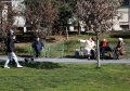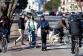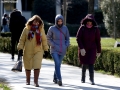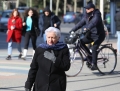 Bypassers dressed in thick winter clothing, scarves and hats, walk in Tirana. For several days temperatures have dropped and the whole country has been swept by strong winds, rain and snow, as temperatures have decreased significantly.