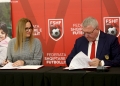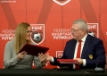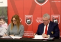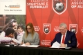 AFF AGREEMENT WITH TERRES DES HOMMES - The President of the Albanian Football Federation, Armand Duka, and the National Director of the organization 'Terre Des Hommes' in Albania, Enkelejda Kallciu, shake hands during the signing ceremony of a cooperation agreement in the field of protection and safety of children in football. The cooperation between the two organizations has already started with the training of the Federation's staff, while these trainings will also be extended to the various football academies and clubs in Albania.