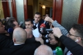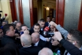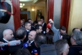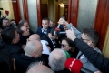 MPs Sali Berisha, Luciano Boci, Albana Vokshi and Tritan Shehu walking towards the parliament where they tried to enter even though they were expelled a few days ago for 10 days. Members of the Guard of the Republic tried to stop them while journalists tried to broadcast the words that were said.