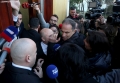 Citizens and the police force during a protest called by the chairman of the democratic party, Sali Berisha, while the latter and other members of the party tried to enter the parliament even though they were expelled a few days ago for 10 days. Members of the Guard of the Republic tried to stop them while journalists tried to broadcast the words that were said.