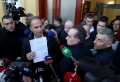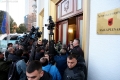 MPs Sali Berisha, Luciano Boci, Flamur Noka, Albana Vokshi and Tritan Shehu walking towards the parliament where they tried to enter even though they were expelled a few days ago for 10 days. Members of the Guard of the Republic tried to stop them while journalists tried to broadcast the words that were said.