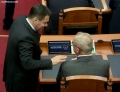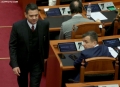 Head of the democratic party, Sali Berisha and MP Flamur Noka during a parliamentary session. Even though they were excluded from the parliament for 10 days, the chairman of the DP, Sali Berisha, and MPs Flamur Noka and Oerd Bylykbashi managed to break through the members of the Guard of the Republic and entered. In a session where at one point there was no electricity, the opposition MPs did not allow its holding by verbally attacking the ministers and demanding the presence of Prime Minister Edi Rama to debate about the McGonigal case.