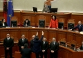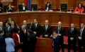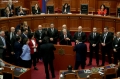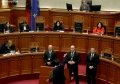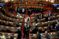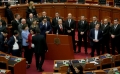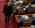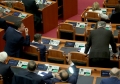 Opposition MPs block the podium while other MPs leave a parliamentary session. Even though they were excluded from the parliament for 10 days, the chairman of the DP, Sali Berisha, and MPs Flamur Noka and Oerd Bylykbashi managed to break through the members of the Guard of the Republic and entered. In a session where at one point there was no electricity, the opposition MPs did not allow its holding by verbally attacking the ministers and demanding the presence of Prime Minister Edi Rama to debate about the McGonigal case.